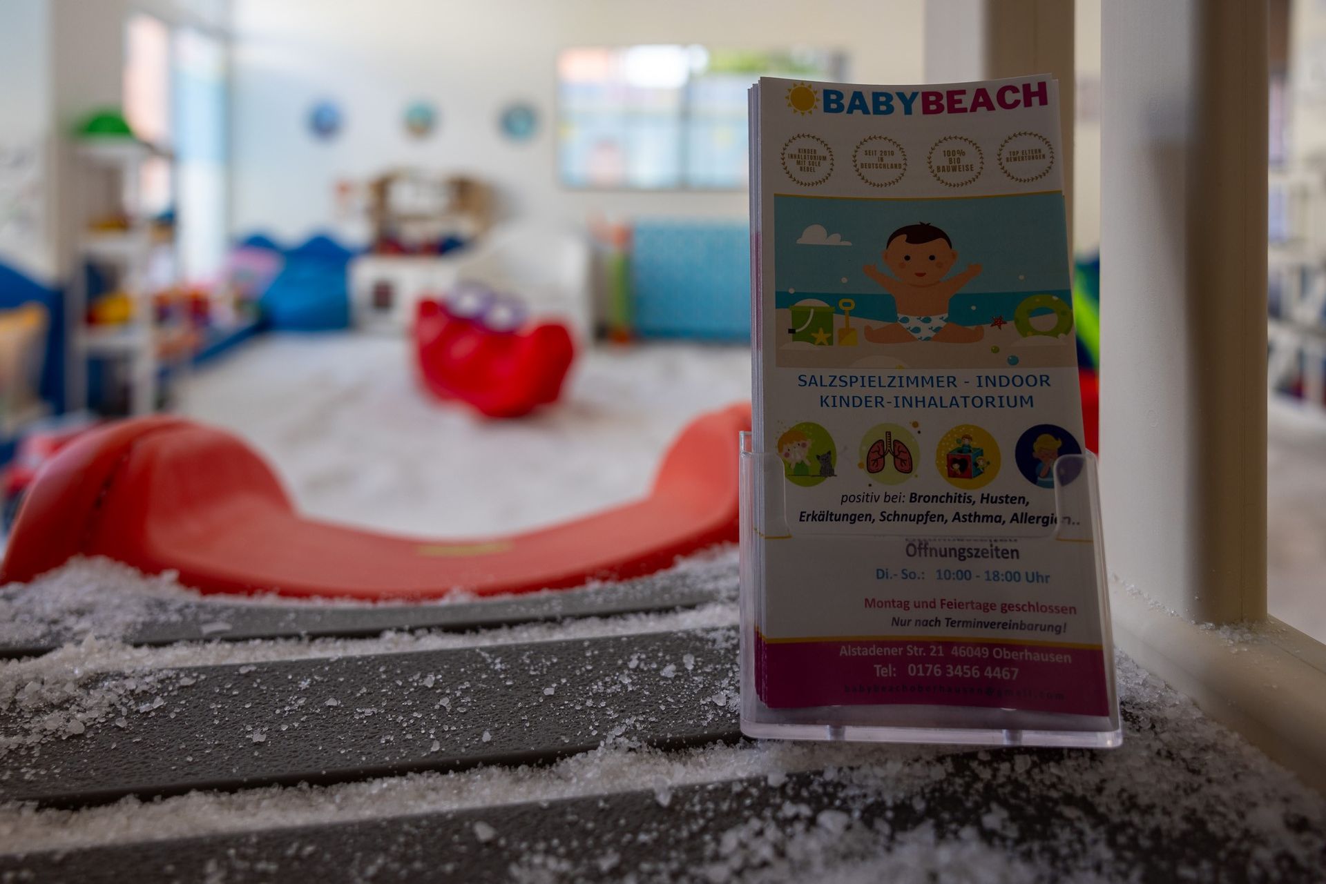 BabyBeach ist nicht nur ein Salzinhalatorium für Kinder, sondern auch ein einzigartiger Ort zum Spielen und Entspannen. Das Herzstück von BabyBeach ist der speziell gestaltete Indoor-Salz-Spielplatz, dessen Boden mit feinem Salz bedeckt ist und der eine besonders salzhaltige Luft bietet. Hier können Kinder in einer gesunden und beruhigenden Umgebung spielen, während die Eltern sich entspannen. Bitte beachten Sie, dass wir weder eine medizinische noch eine therapeutische Einrichtung sind, sondern einen Ort für wohltuende Auszeiten in salziger Atmosphäre bieten.